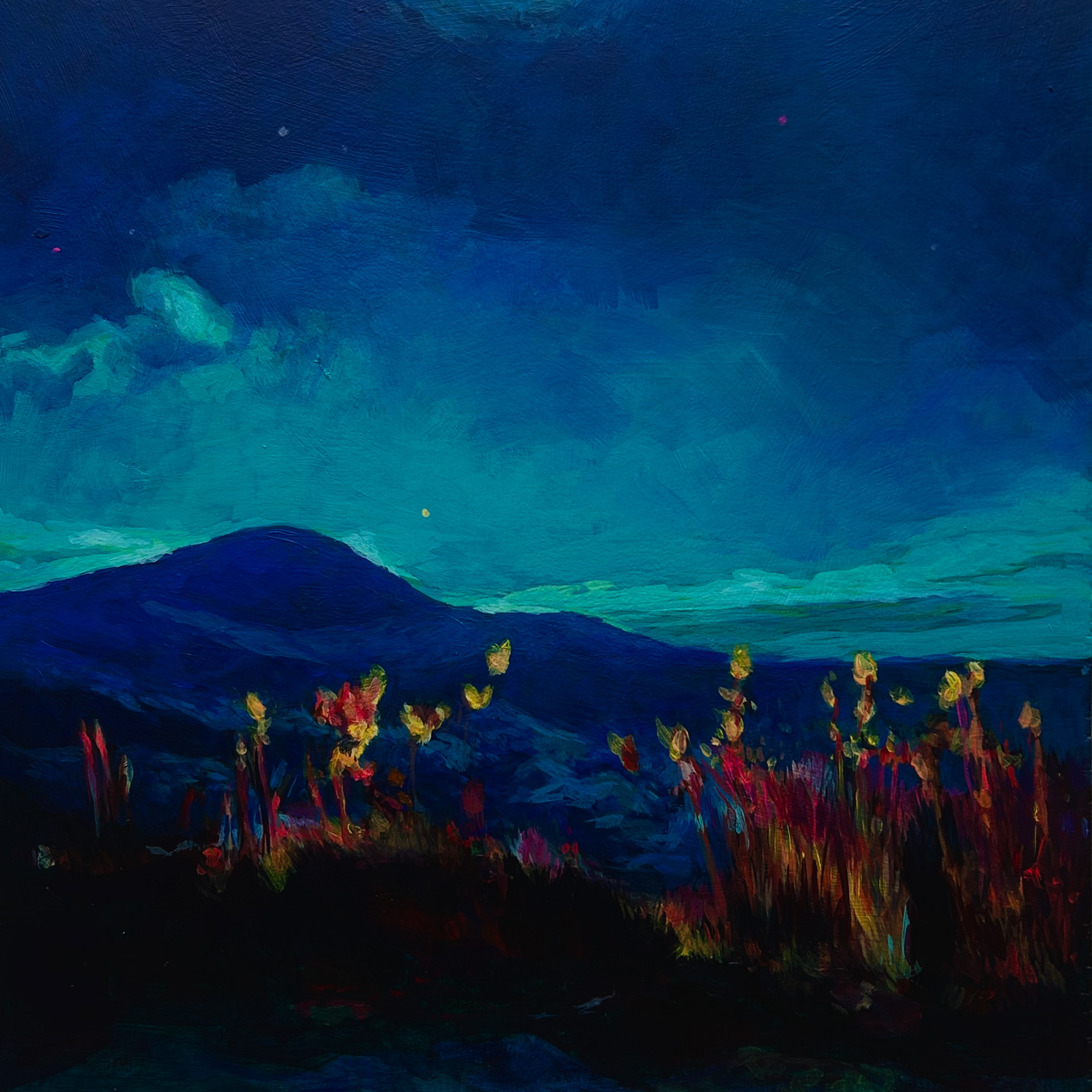 "The Brown Mountain Lights", Acrylic on Board, 13 1/8" x 13 7/8", 2025